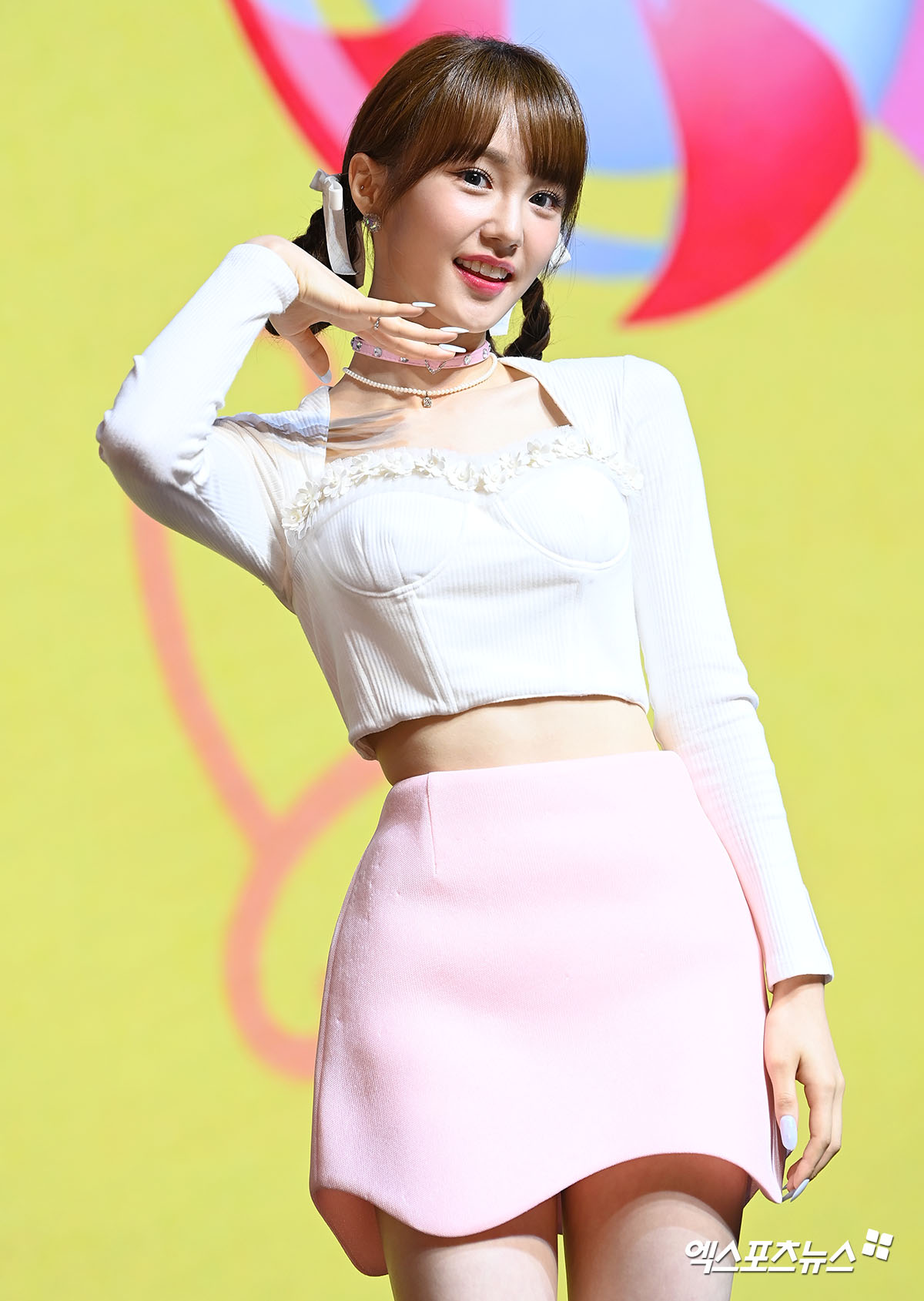 이날 쇼케이스에 참석한 woo!ah!(우아) 나나가 포즈를 취하고 있다.
