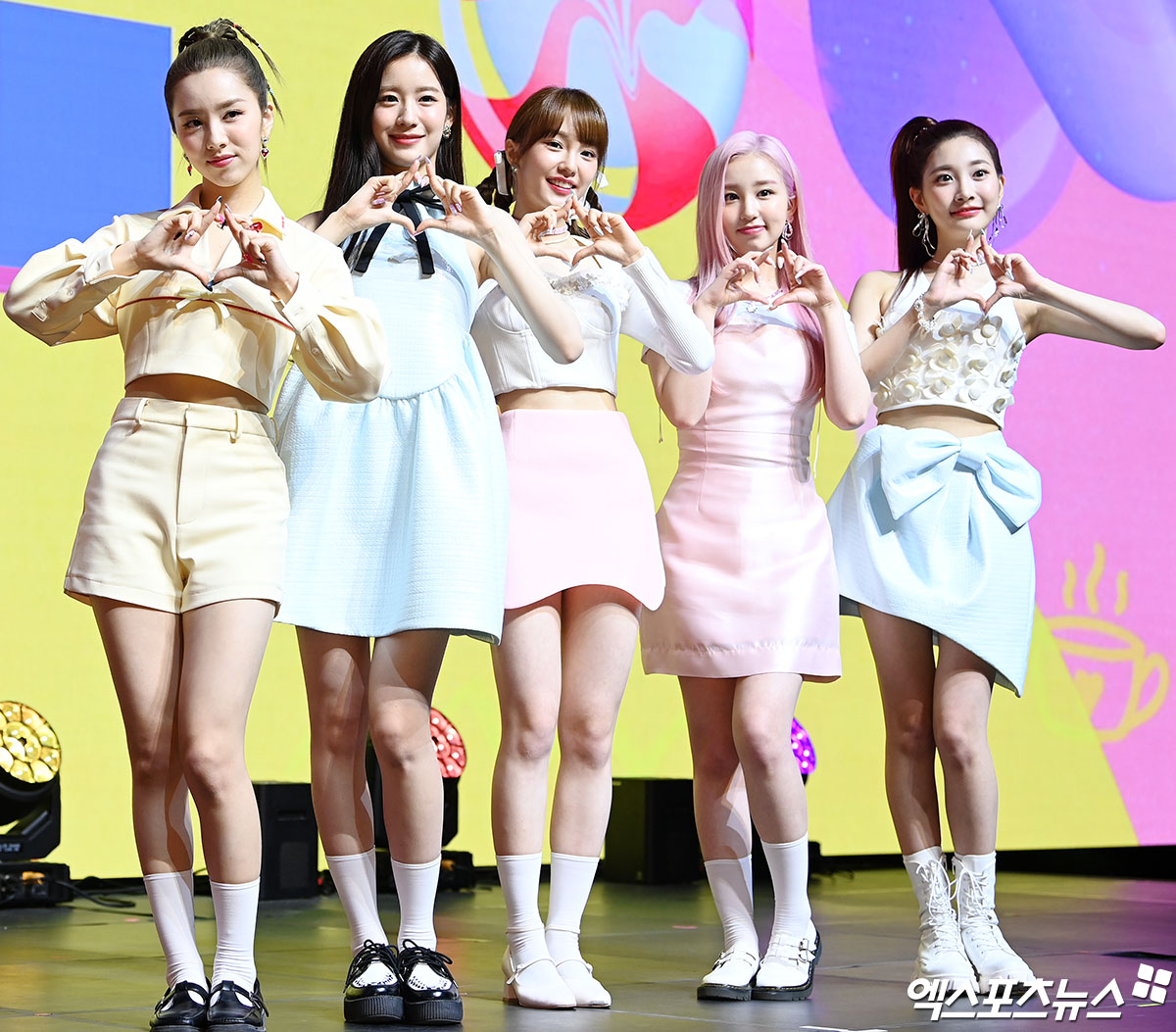 이날 쇼케이스에 참석한 woo!ah!(우아)가 포즈를 취하고 있다.