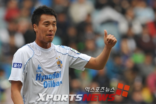 [엑스포츠뉴스=수원월드컵경기장,정재훈 기자] 2일 오후 수원월드컵경기장에서 '현대 오일뱅크 2011 K리그' 수원 삼성과 울산 현대의 경기가 열렸다. 동점골을 터뜨린 김신욱이 엄지손가락을 들어보이고 있다.