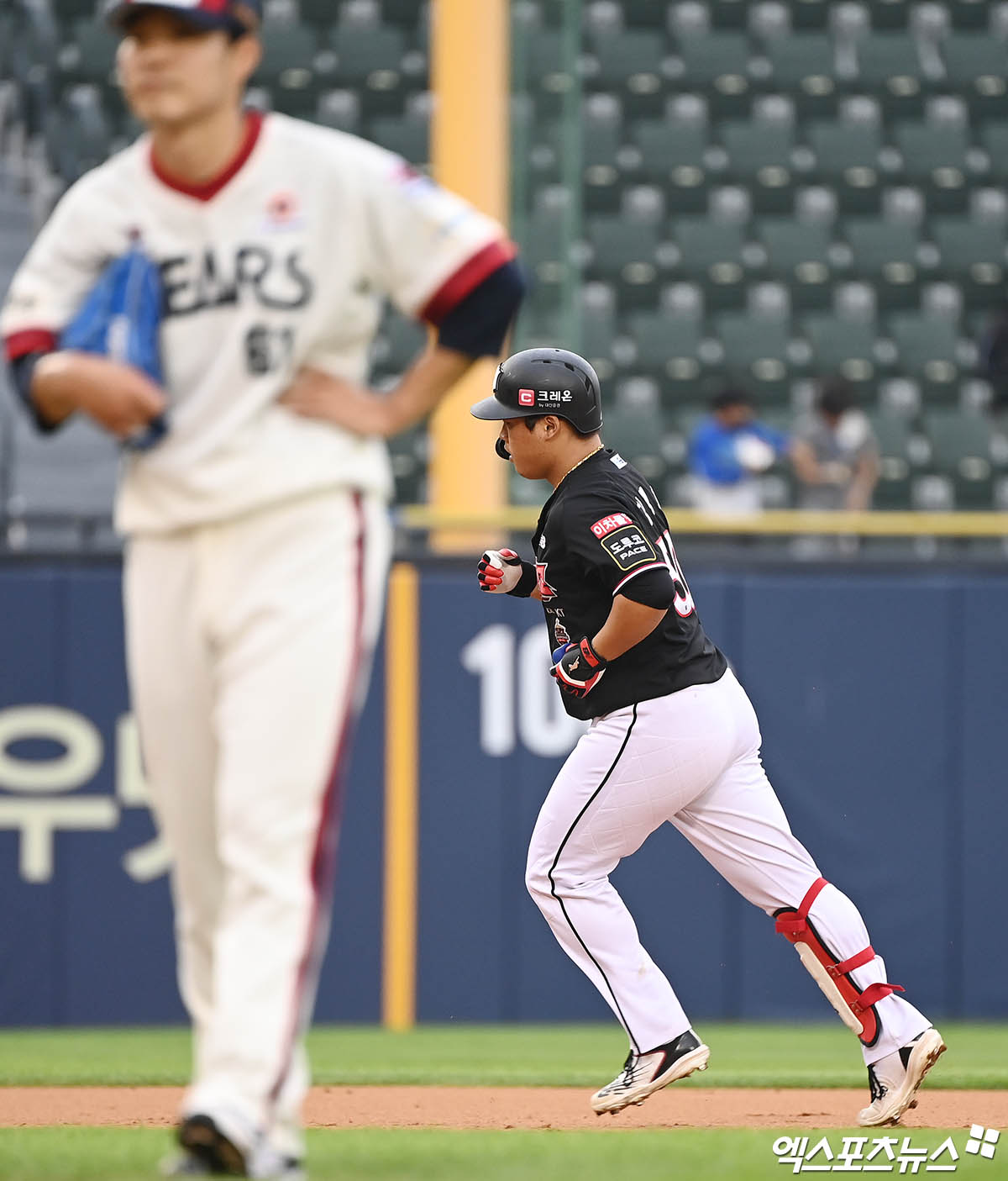 (엑스포츠뉴스 잠실, 박지영 기자) 19일 오후 서울 송파구 잠실야구장에서 열린 '2022 신한은행 SOL KBO리그' KT 위즈와 두산 베어스의 경기, 3회초 2사 2루 KT 강백호가 두산 선발투수 최원준 상대로 투런 홈런을 때려낸 뒤 베이스를 돌고 있다.