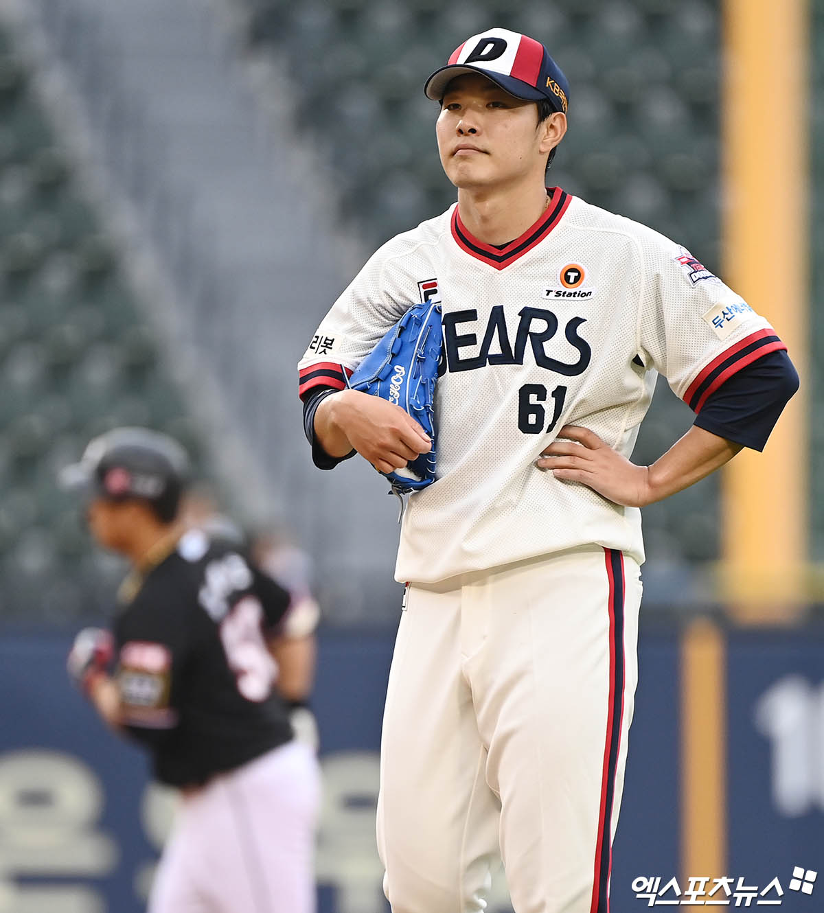 (엑스포츠뉴스 잠실, 박지영 기자) 19일 오후 서울 송파구 잠실야구장에서 열린 '2022 신한은행 SOL KBO리그' KT 위즈와 두산 베어스의 경기, 3회초 2사 2루 두산 선발투수 최원준이 KT 강백호에게 투런 홈런을 허용한 뒤 아쉬워하고 있다.