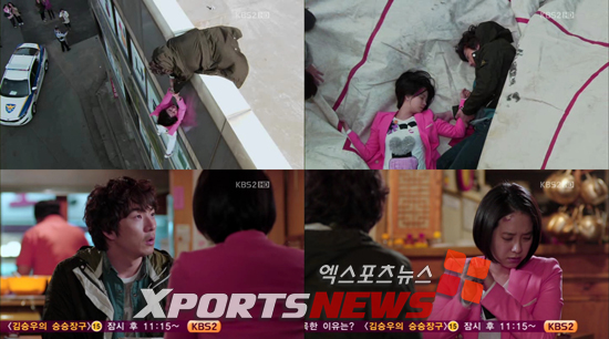 그 순간 두 사람은 동시에 밑으로 떨어졌다. 다행이 구조대가 설치해 놓은 에어매트로 떨어져 목숨은 구했지만, 이후 녹두빈대떡을 먹으러 간 두 사람의 분위기는 어색, 민망 그 자체라 시청자의 흐뭇한 미소를 자아냈다.