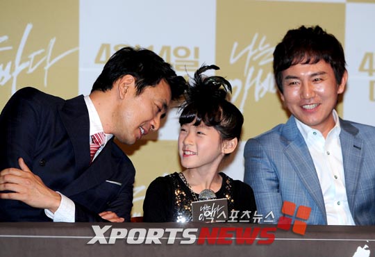 [엑스포츠뉴스 = 권태완 기자] 6일 오후 서울 롯데시네마 건대점에서 열린 영화 '나는 아빠다' 언론시사회에서 극중 딸로 출연하는 김새론에게 어려운 질문이 들어오자 김승우가 답변에 도움을 주고 있다.