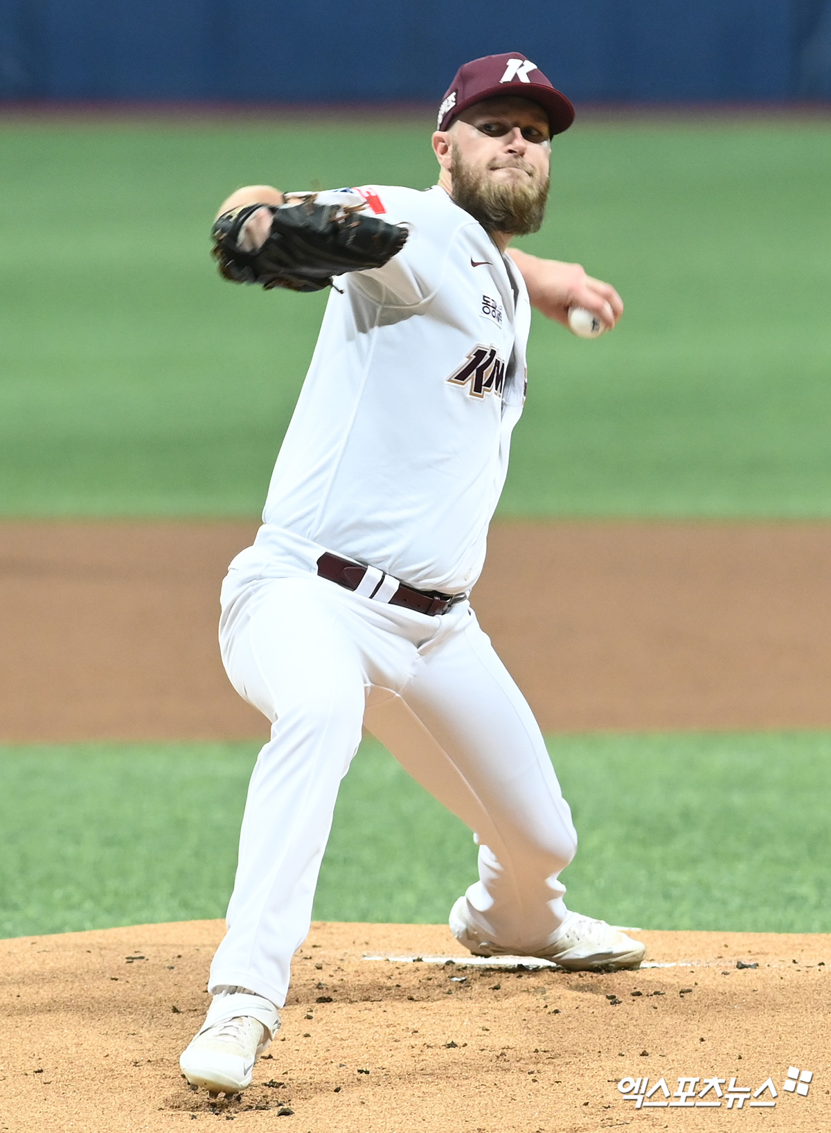 (엑스포츠뉴스 고척, 고아라 기자) 23일 오후 서울시 구로구 고척스카이돔에서 열린 ’2022 신한은행 SOL KBO리그’ 삼성 라이온즈와 키움 히어로즈의 경기, 1회초 키움 선발투수 요키시가 공을 힘차게 던지고 있다.