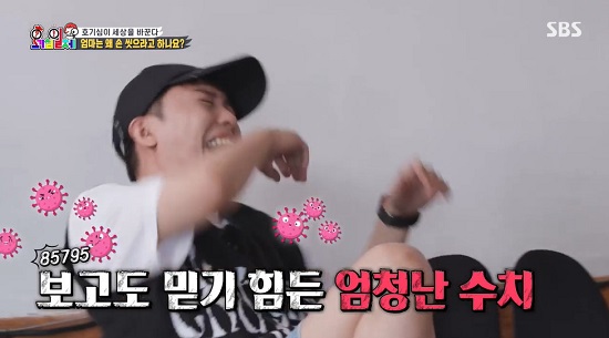 "주먹 쥐어봐"까지 외치며 은지원의 손을 문지르는 양세형에 은지원은 "양세형의 손 세균이 내게 올 것 같다"며 투덜댔다. 모두의 관심을 받은 마지막 주자 은지원의 손 오염도는 무려 '85795'였다. 이는 세균맨으로 놀림을 받은 양세형의 6배에 달하는세균 수치였다.
