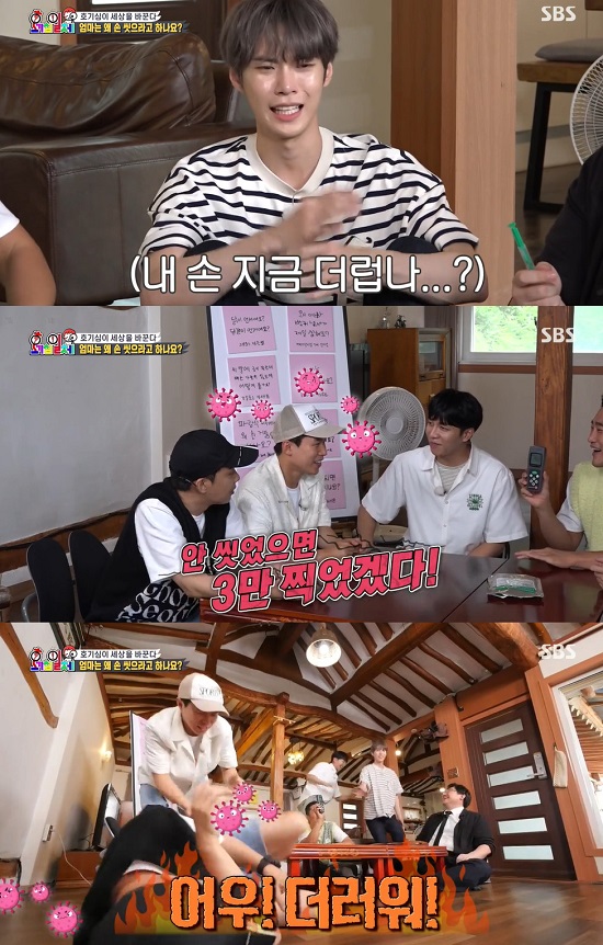 이승기는 양세형에게 "손 2번이나 씻었다며, 안 씻었으면 3만 넘었겠다"라며 호통을 쳤다. 이에 수치심을 느낀 양세형은 아직 유일하게 수치를 재지 않은 은지원의 손의 세균을 꼼꼼하게 수집했다.