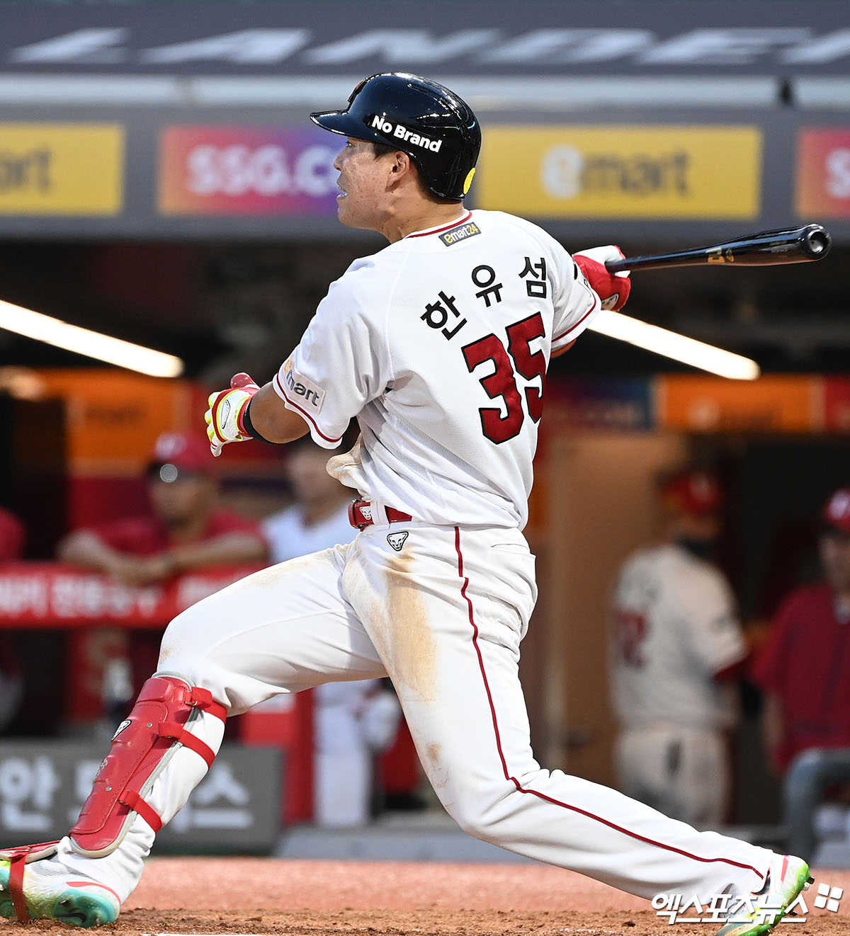 (엑스포츠뉴스 인천, 김한준 기자) 27일 오후 인천 SSG랜더스필드에서 열린 ’2022 신한은행 SOL KBO리그’ LG 트윈스와 SSG 랜더스의 경기, 5회말 1사 SSG 한유섬이 솔로 홈런을 날리고 있다.