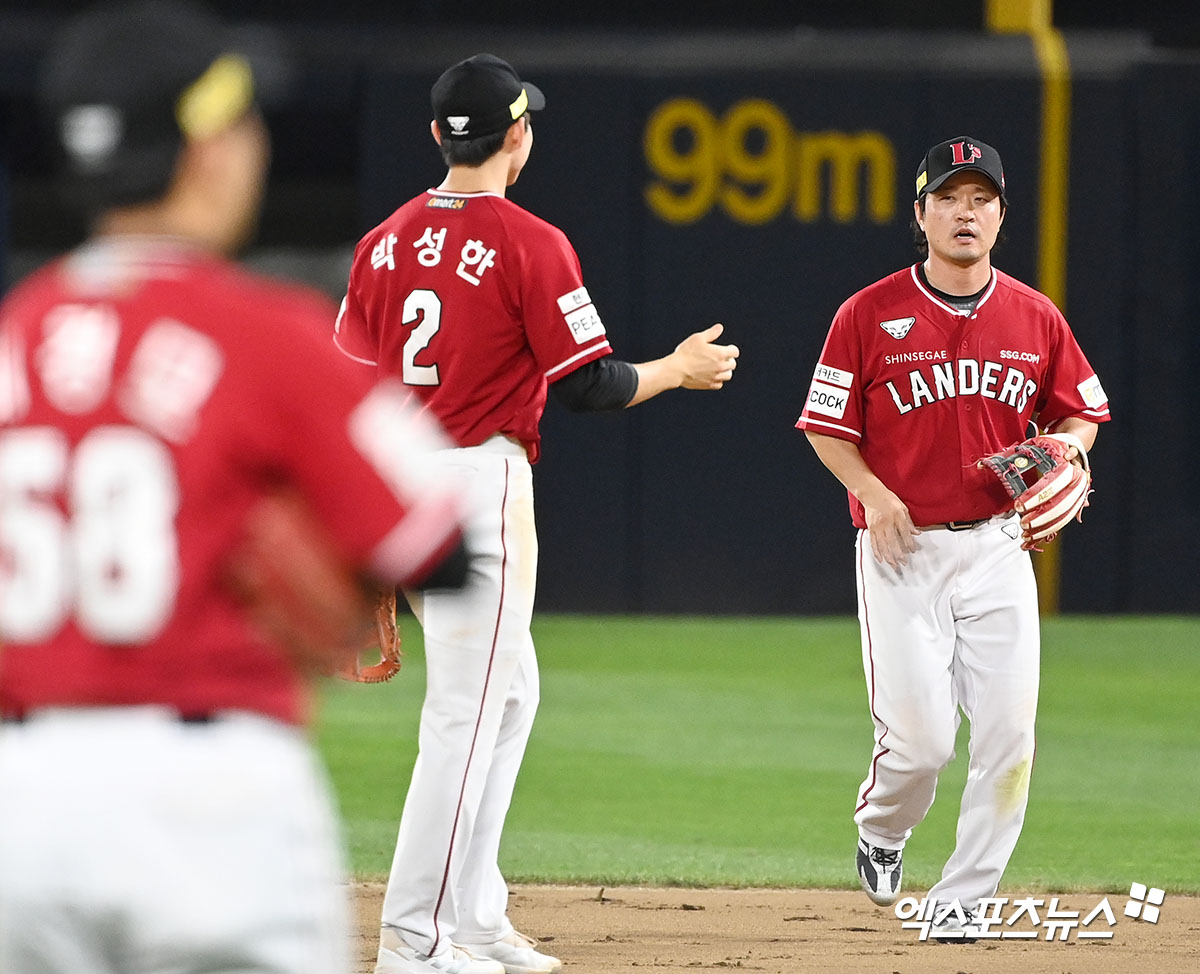 (엑스포츠뉴스 광주, 김한준 기자) 30일 오후 광주-KIA챔피언스필드에서 열린 ’2022 신한은행 SOL KBO리그’ SSG 랜더스 와 KIA 타이거즈의 경기, SSG가 KIA에 7:5로 승리하며 전날의 패배를 설욕했다. 경기종료 후 SSG 김성현이 기뻐하고 있다.