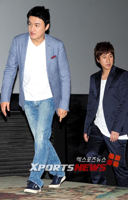 [엑스포츠뉴스 = 권태완 기자] 25일 오후 서울 자양동 롯데시네마 건대점에서 열린 영화 '체포왕' 언론시사회에서 박중훈과 이선균이 입장하고 있다.