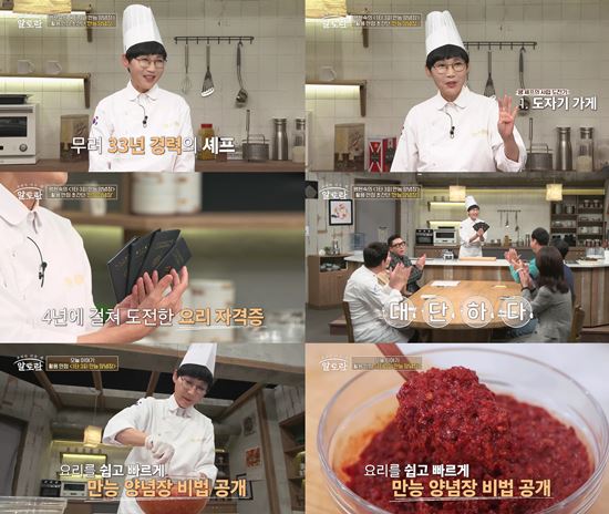 이날 한식, 일식, 중식, 양식 4개의 조리기능사 자격증 보유 사실을 고백하는 팽현숙은 “한 번에 붙은 자격증은 없다. 4년에 걸쳐서 떨어지면 도전하고, 또 떨어지면 도전해서 4개를 땄다. 의사가 자격증이 없으면 의사인가? (요식업을 하면서) 최소한의 자격증은 따야 인정을 받지 않을까 해서 모두 땄다”라고 진짜 셰프임을 입증한다. 이후 그의 ‘만능 양념장’으로 만든 요리 3종을 맛본 패널들이 모두 극찬을 쏟아내 그 맛에 궁금증을 유발한다.