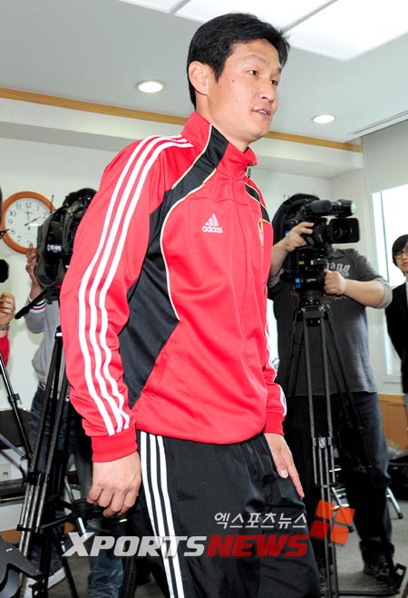 [엑스포츠뉴스 = 권태완 기자] 28일 오후 경기도 구리 GS챔피언스파크에서 열린 FC서울 정규리그 8라운드 프레스데이에서 최용수 수석코치가 입장하고 있다.
