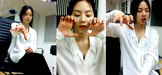 소희는 사진 속에서 흰색 셔츠를 입고 민낯으로 토끼를 흉내를 내거나 귀신 포즈를 취하는 등 다양한 표정의 엉뚱한 포즈를 취하고 있다.