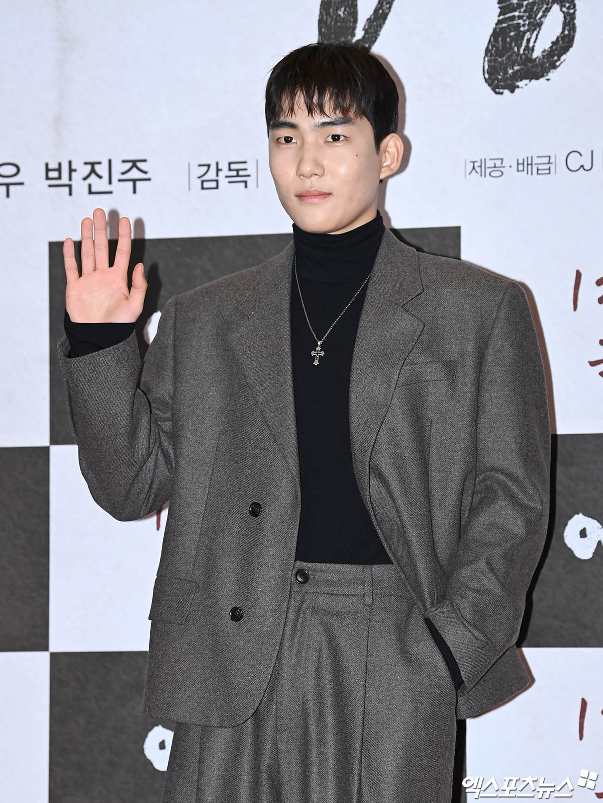 이날 VIP 시사회에 참석한 배우 탕준상이 포토타임을 갖고 있다.