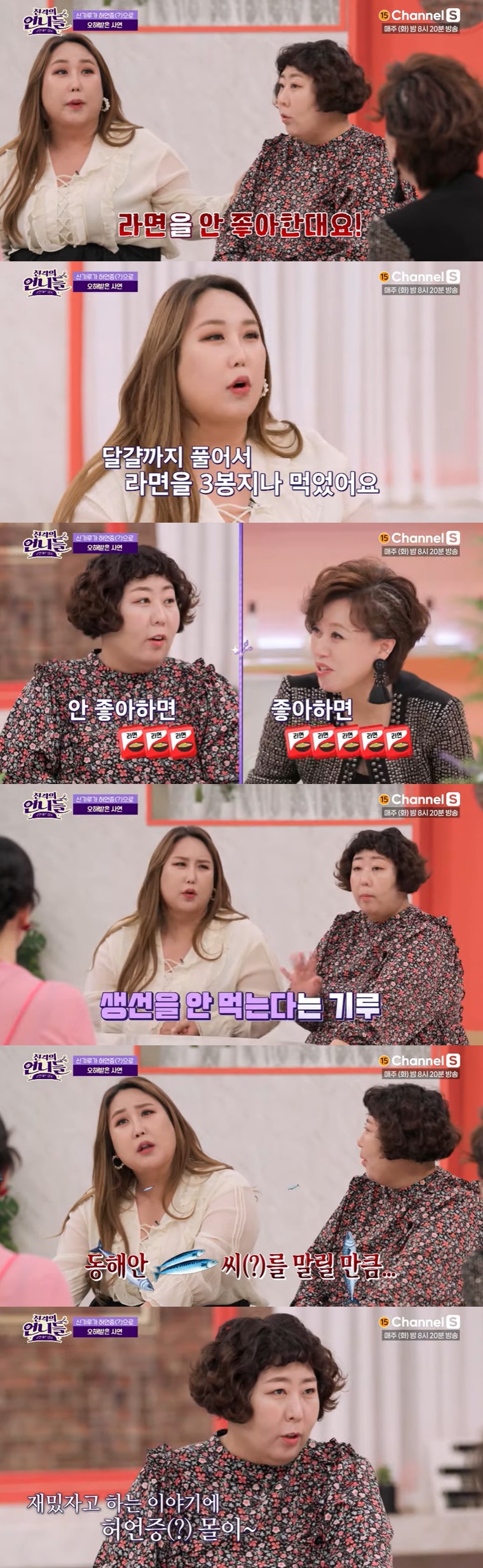 또한 풍자는 "생선을 안 좋아한다고 하더라. 그런데 고등어를 동해안 씨를 말릴 만큼 먹은 걸 봤다"고 폭로, 이에 신기루는 "안 먹는 게 아니라 안 좋아하는 거다. 그래도 가시는 안 먹지 않았냐"고 해명했다.