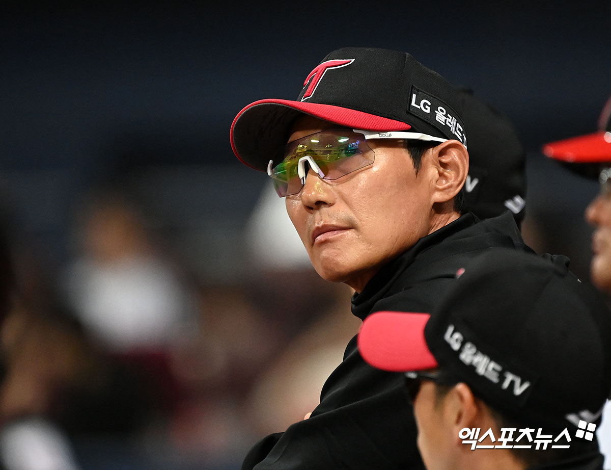 (엑스포츠뉴스 고척, 김한준 기자) 5일 오후 서울 구로구 고척스카이돔에서 열린 ’2023 신한은행 SOL KBO리그’ LG 트윈스와 키움 히어로즈의 경기, LG 염경엽 감독이 생각에 잠겨 있다.