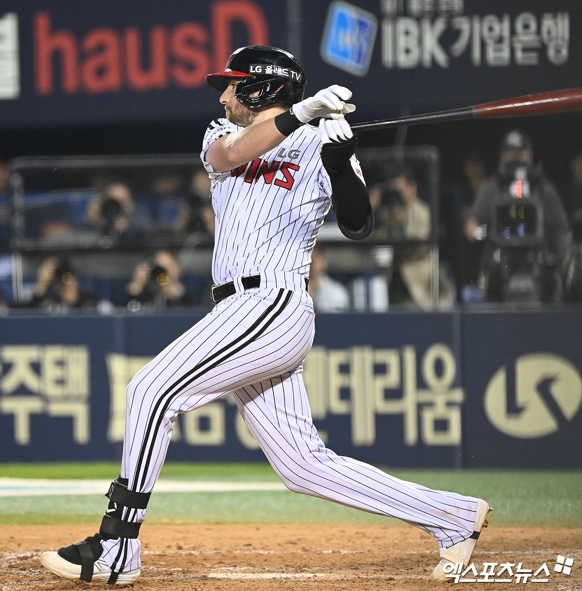 (엑스포츠뉴스 잠실, 김한준 기자) 9일 오후 서울 송파구 잠실야구장에서 열린 '2023 신한은행 SOL KBO리그' 키움 히어로즈와 LG 트윈스의 경기, 5회말 2사 LG 오스틴이 중전안타를 날리고 있다.