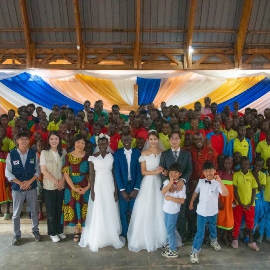 함께 공개된 사진 속에는 웨딩드레스와 턱시도를 입은 김정화 유은성 부부와, 현지 지인의 모습이 담겨있다. 또한 우간다 지역의 많은 이들이 모여 이들의 결혼을 축하해주고 있어 훈훈함을 더했다.