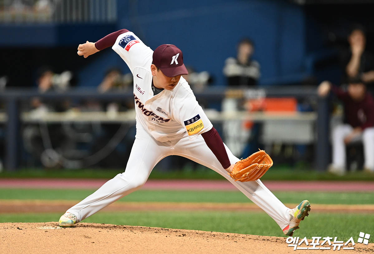 (엑스포츠뉴스 고척, 박지영 기자) 28일 오후 서울 구로구 고척스카이돔에서 열린 '2023 신한은행 SOL KBO리그' 롯데 자이언츠와 키움 히어로즈의 경기, 5회초 2사 2루 키움 양현이 역투하고 있다.