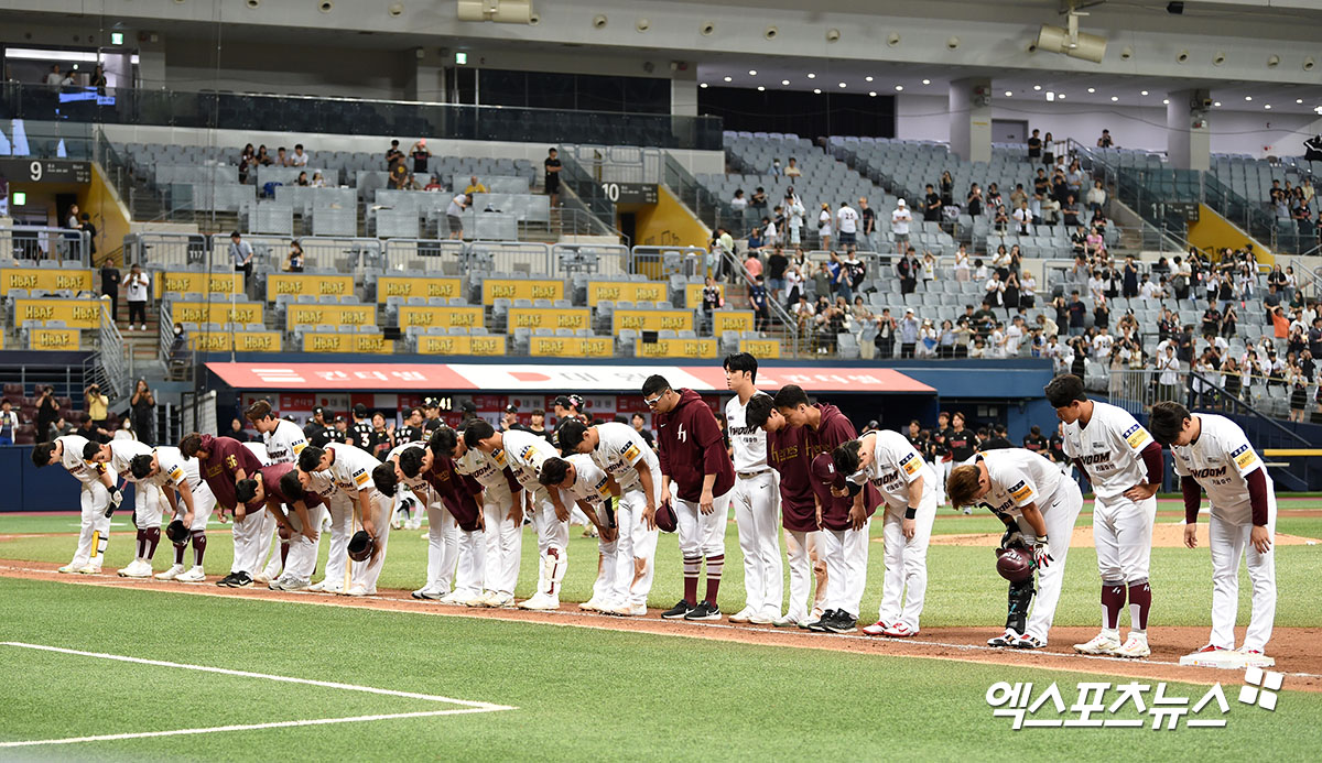 ​​​​​​​경기종료 후 키움 선수들이 관중석을 향해 인사를 하고 있다.