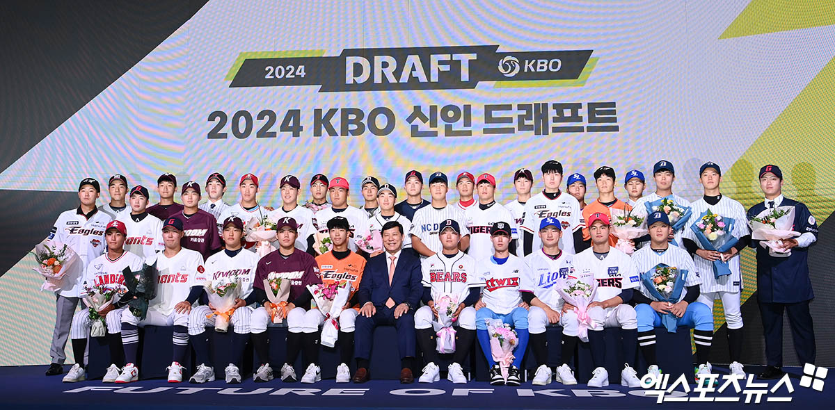 (엑스포츠뉴스 박지영 기자) 14일 오후 서울 소공동 웨스틴조선에서 열린 '2024 KBO 신인 드래프트'에 참석한 선수들이 기념 촬영을 하고 있다.