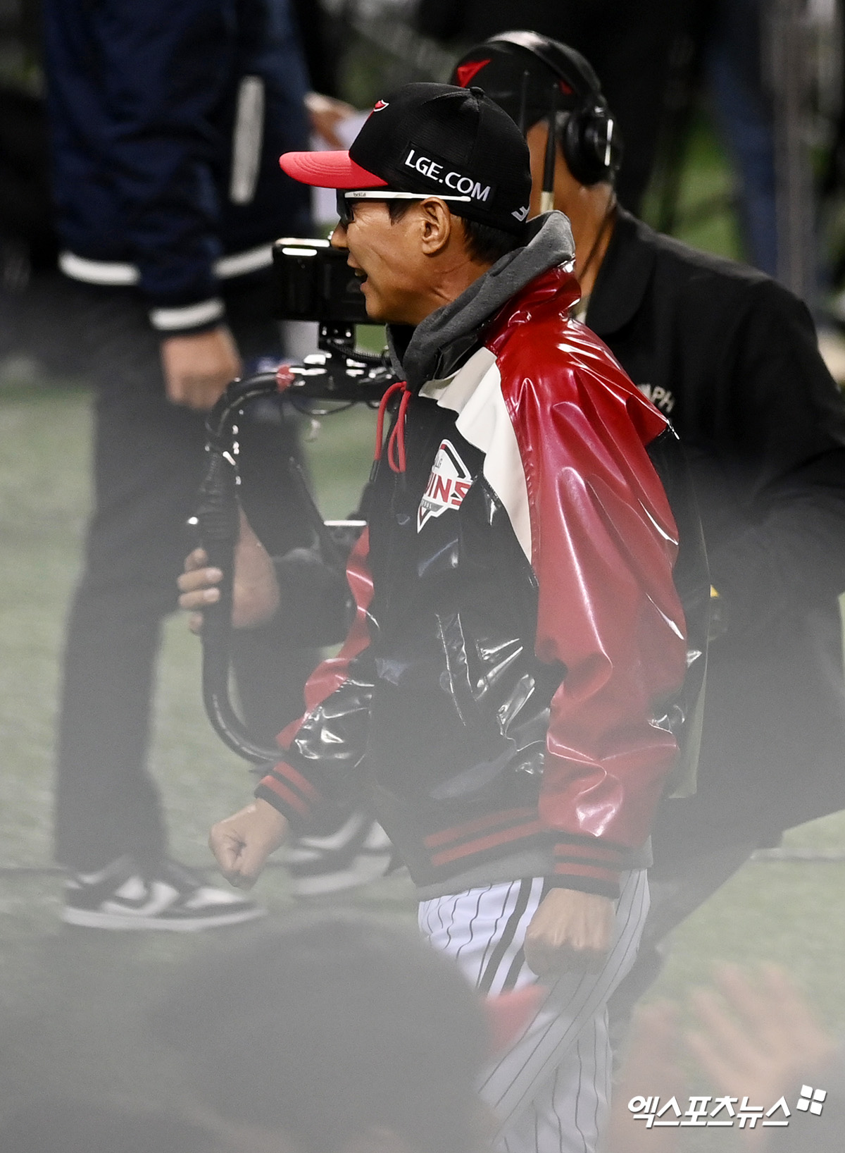 경기 종료 후 LG 염경엽 감독이 기뻐하고 있다.