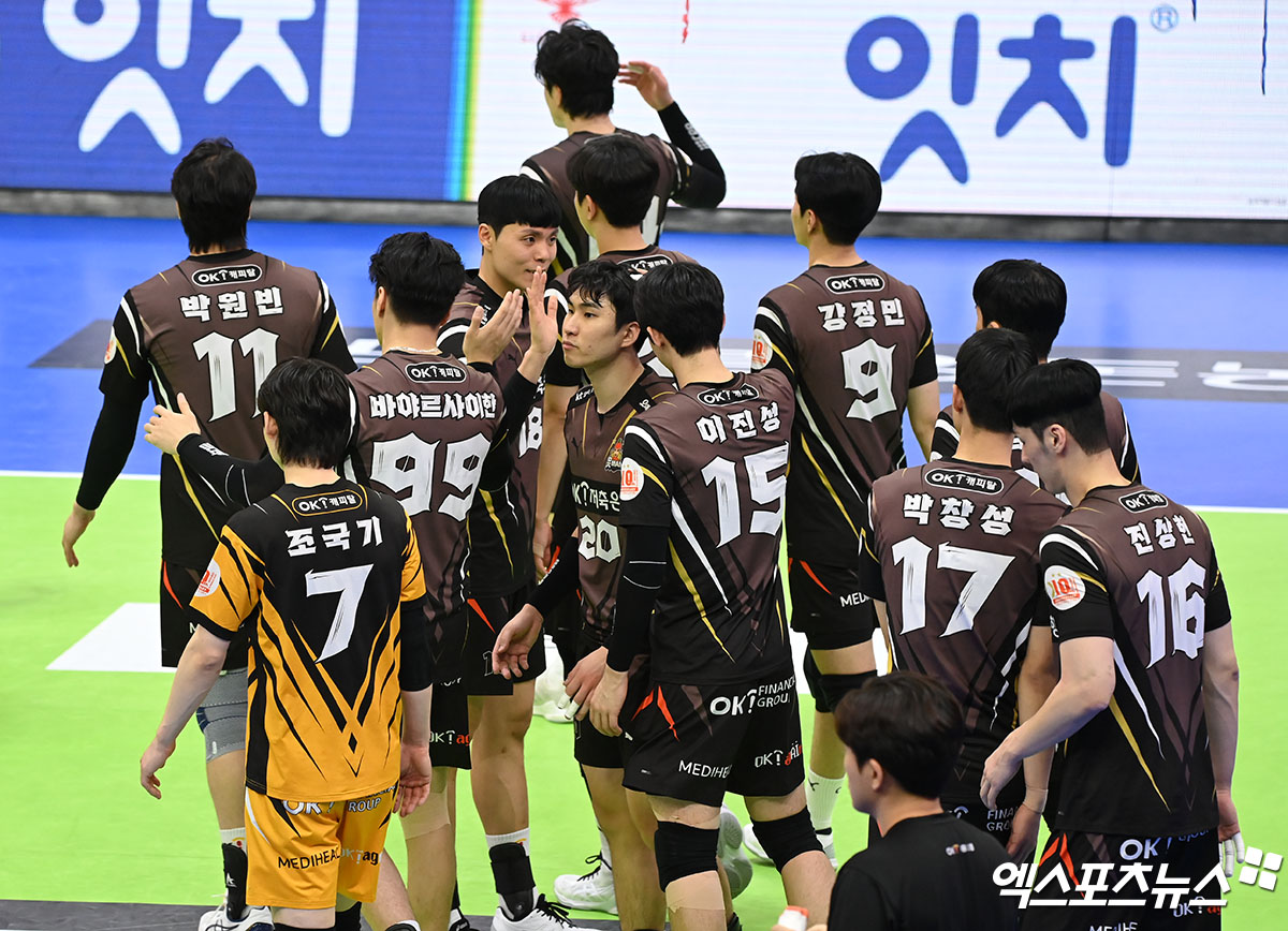 경기종료 후 OK금융그룹 선수들이 아쉬워하고 있다.