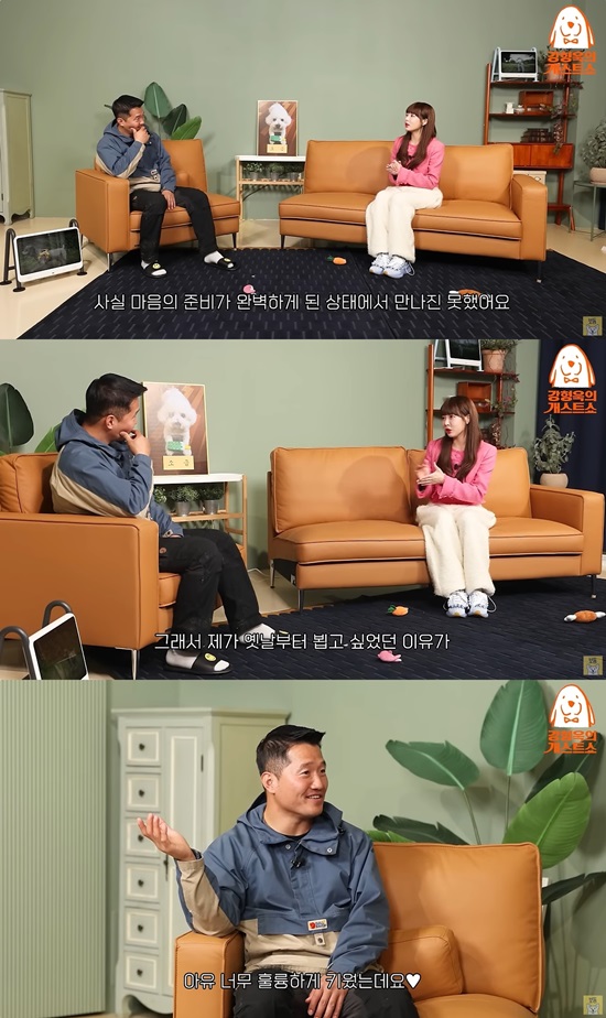 그는 "사실 마음의 준비가 완벽하게 된 상태에서 만나진 못했다. 그래서 제가 옛날부터 뵙고 싶었던 이유가 좋은 주인이 되어보고 싶어서"라고 이야기했다. 이에 강형욱은 "너무 훌륭하게 키웠다"고 칭찬했다.