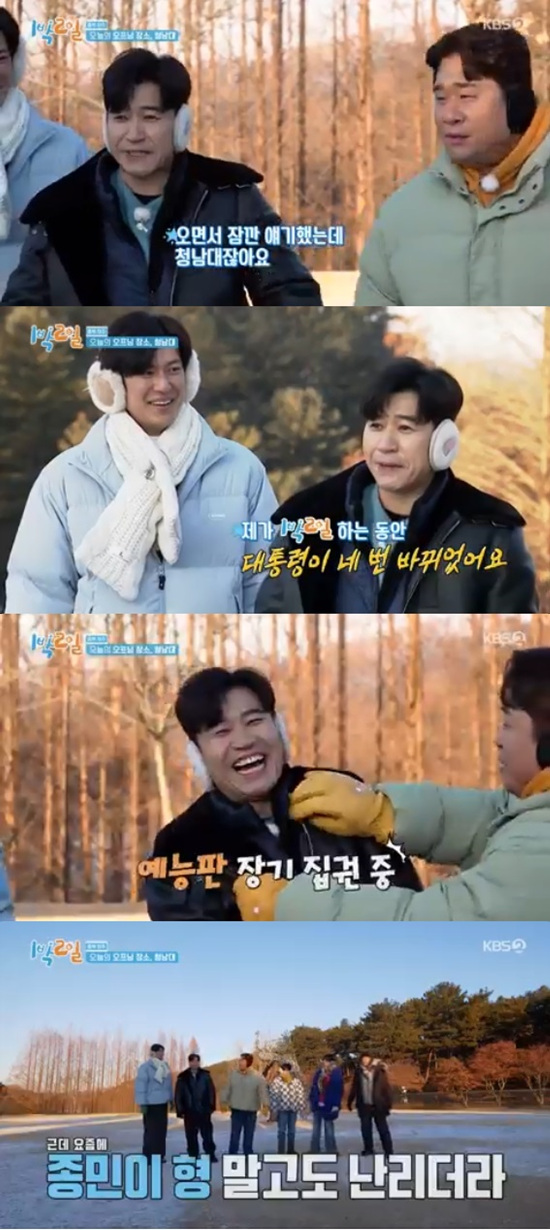 (엑스포츠뉴스 원민순 기자) 김종민이 청남대 방문에 '1박 2일'을 하는 동안 대통령이 4번 바뀌었다고 밝혔다.