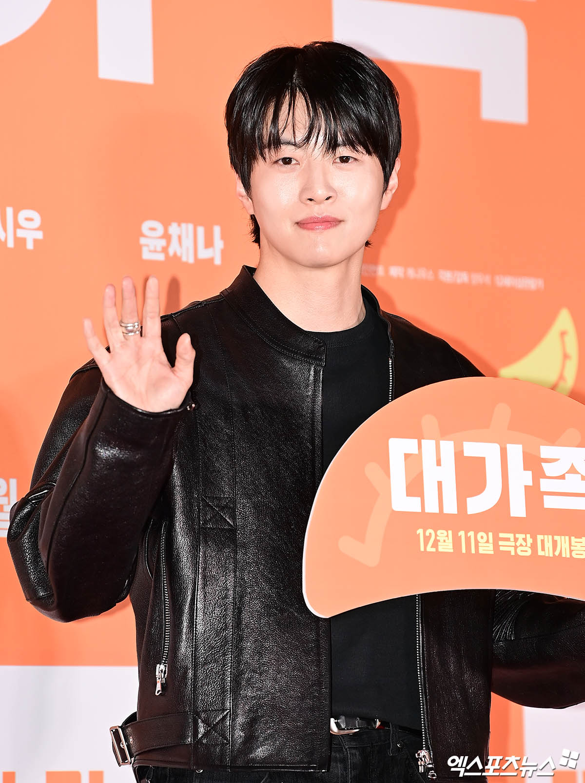 이날 VIP시사회에 참석한 배우 신수항이 포토타임을 갖고 있다.