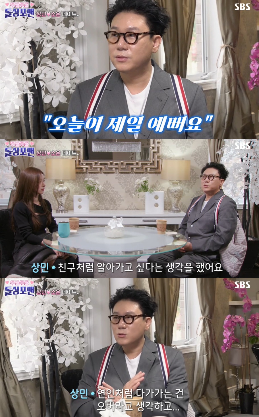 이상민은 "오늘이 제일 예쁘다"고 훅 플러팅을 던지더니 "친구처럼 알아가고 싶다는 생각을 했다. 연인처럼 다가가는 건 오버라고 생각한다"고 본인의 생각을 드러냈고, 김소은은 "그러다 잘 될 수도 있다"고 여지를 남겼다.
