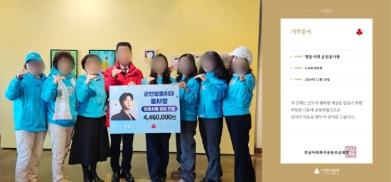 (엑스포츠뉴스 이정범 기자) '영웅시대 순천웅사랑'이 연말을 맞아 446만 원을 기부했다.