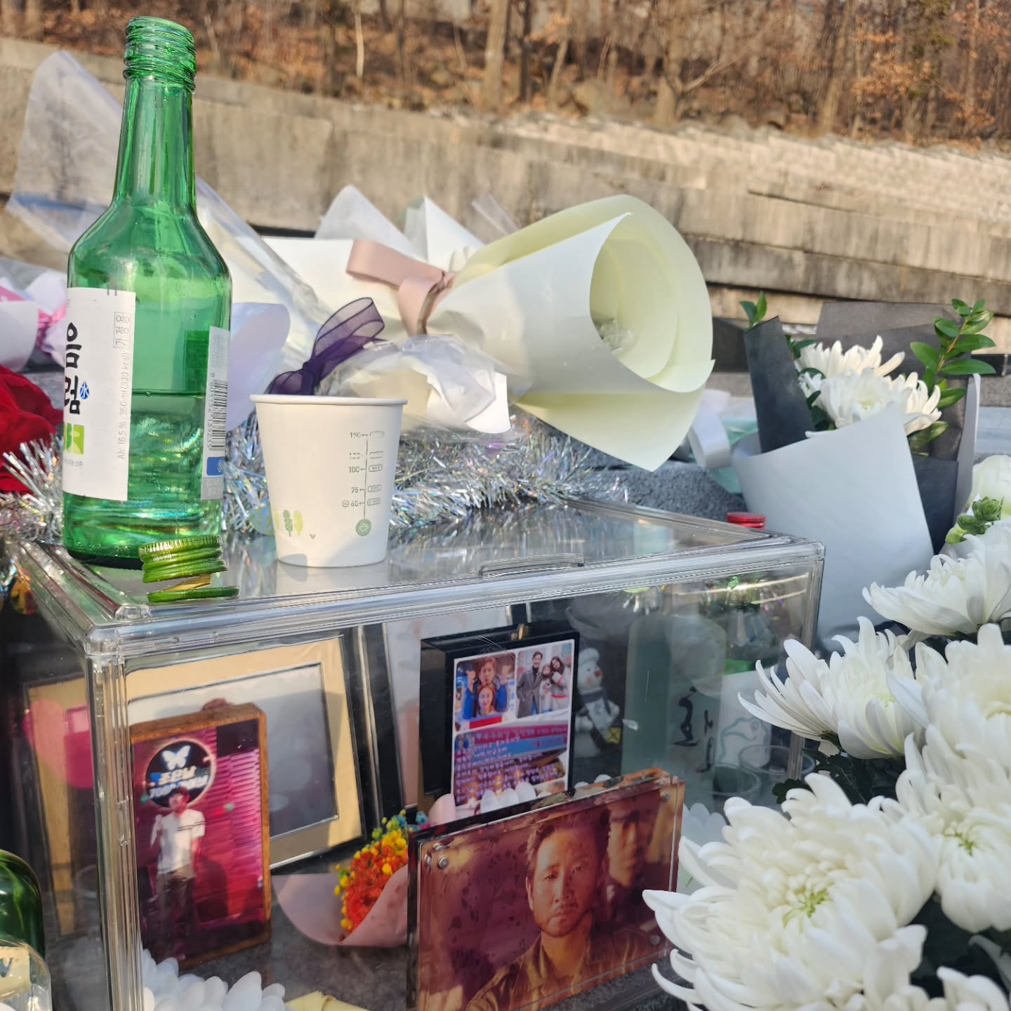 사진에는 많은 이들이 다녀간 것으로 보이는 이선균의 묘소가 담겨있다.