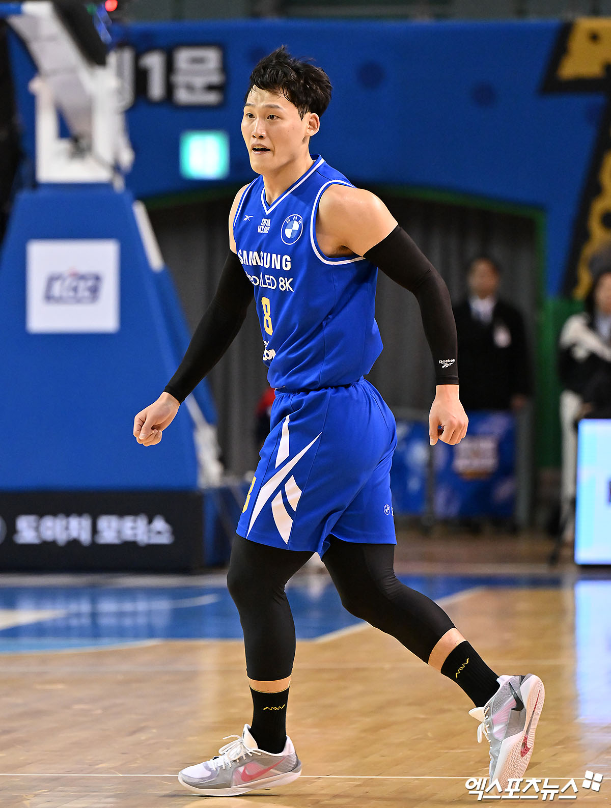 (엑스포츠뉴스 잠실실내체, 김한준 기자) 6일 오후 서울 송파구 잠실실내체육관에서 열린 '2024-2025 KCC 프로농구' 서울 삼성과 부산 KCC의 경기, 삼성 최현민이 3점슛을 성공시키고 있다.