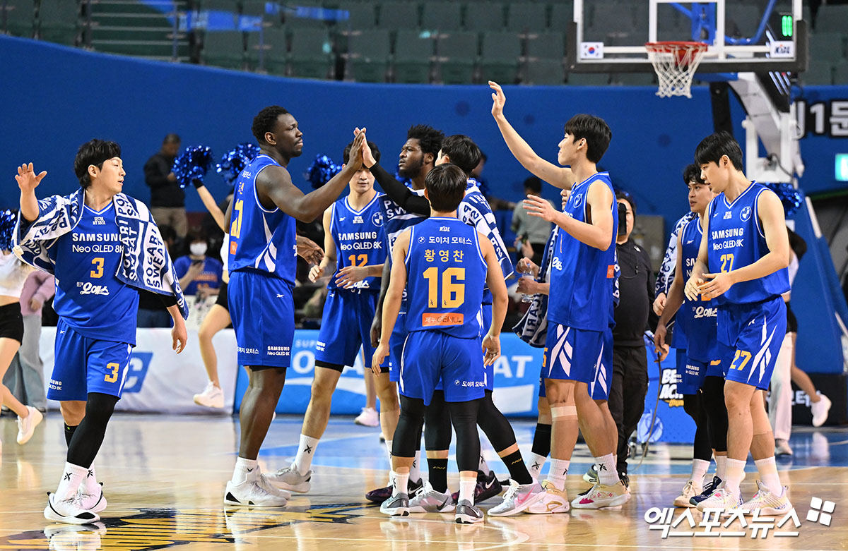 (엑스포츠뉴스 잠실실내체, 김한준 기자) 6일 오후 서울 송파구 잠실실내체육관에서 열린 '2024-2025 KCC 프로농구' 서울 삼성과 부산 KCC의 경기, 삼성이 KCC에 86:72로 승리하며 연패에서 탈출했다.