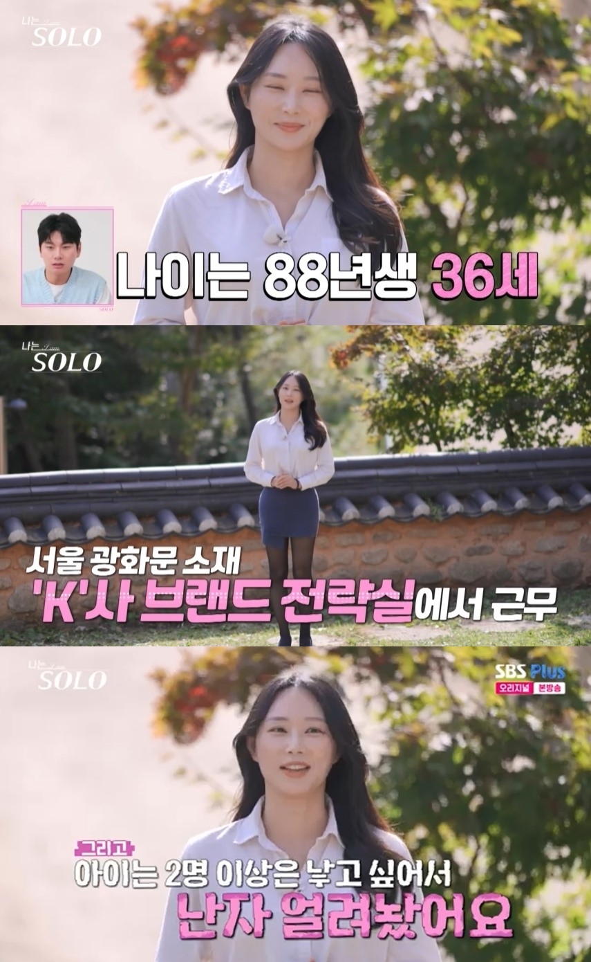 지난 8일 방송된 SBS Plus·ENA 리얼 데이팅 프로그램 '나는 SOLO'(이하 '나는 솔로')에서는 24기 여자 솔로들의 자기소개가 전파를 탔다. 이날 수려한 외모로 출연자들의 시선을 끈 24기 옥순은 1988년생처럼 보이지 않은 동안 외모와 더불어 대기업 'K사' 브랜드 전략실에서 일하고 있다고 소개해 출연진들을 감탄케 했다.