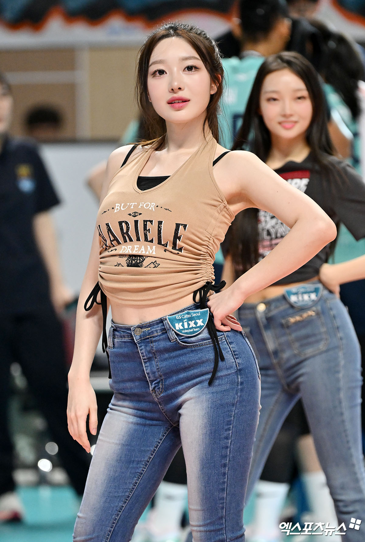 'E컵 치어' 김현영, 가슴 다 못 가린 노출…엉덩이 라인까지 '헉'