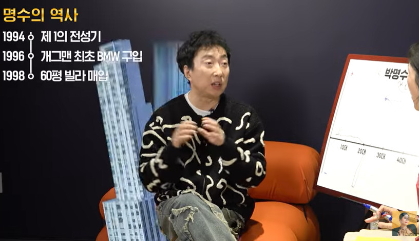 24살에 데뷔한 박명수는 "돈벌이가 안 됐냐"는 질문에 "그렇지 않았다. 돈벌이가 좋았다"고 답하며 '웃으면 복이 와요' 프로그램의 흥행 덕분에 데뷔 6개월 만에 전성기를 맞이했다고 밝혔다.