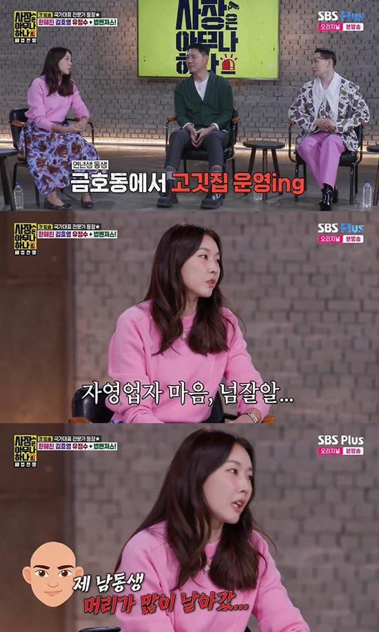이어 김호영은 한혜진에게 "사업 경험이 따로 있냐"고 물었고, 이에 한혜진은 "제 연년생 남동생이 자영업자다. 서울 금호동에서 고깃집을 운영하고 있다"고 말하며 가까이에서 많은 고충을 직접 듣고 있다고 언급했다.