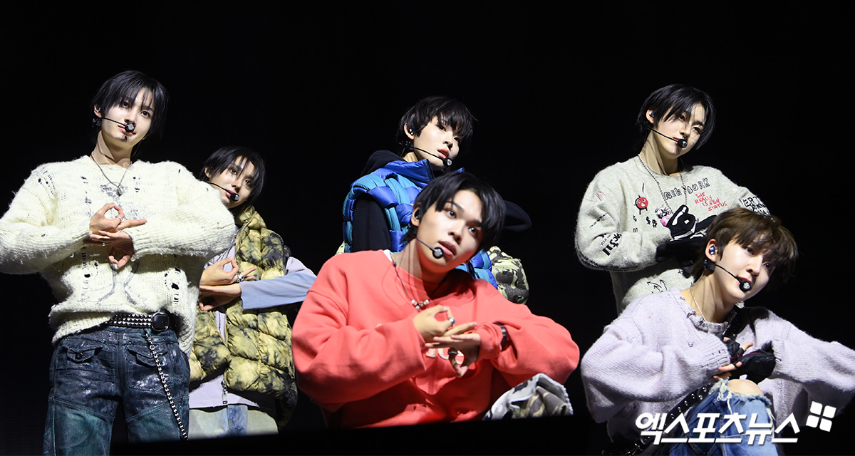 이날 쇼케이스에서 킥플립이 선공개곡 '응 그래' 무대를 펼치고 있다.