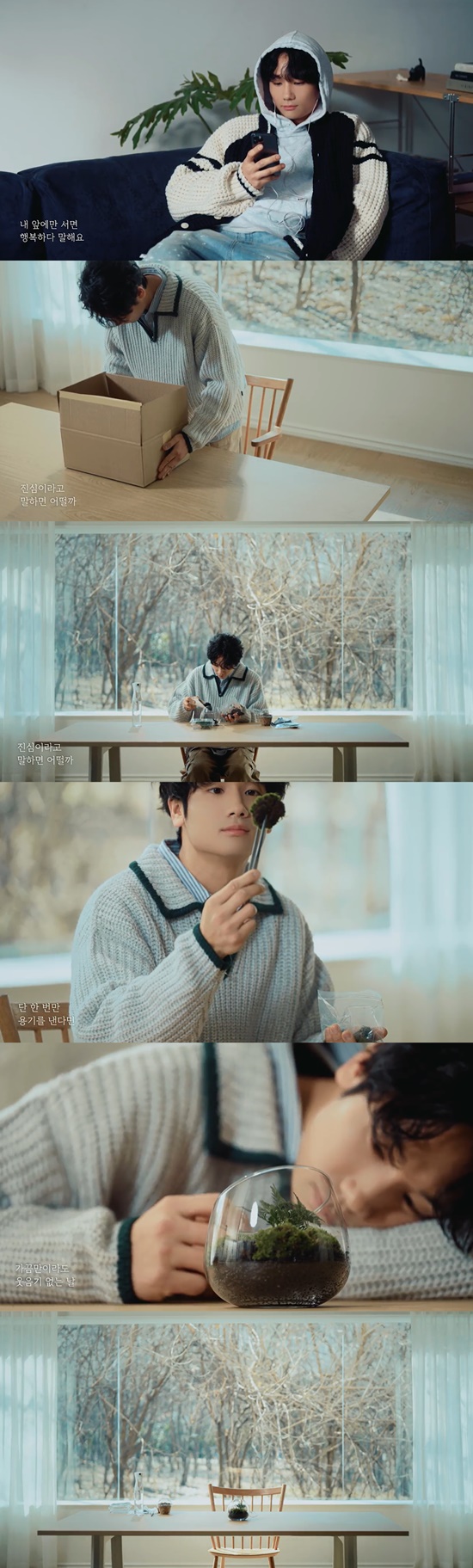 함께 공개된 뮤직비디오는 이번 곡이 가진 서정적이고 차분한 무드를 잘 담아냈다. 영상 속 남자가 쓸쓸한 분위기 속에서 혼자만의 시간을 갖는 모습, 여기에 '사랑한다고 말하면 어떨까 / 단 한 번만 용기를 낸다면 / 내 맘 같지 않게 / 오늘도 내 맘속에서라도 말하면 어떨까'라는 노랫말이 흐르면서 리스너들의 몰입감을 고조시킨다.