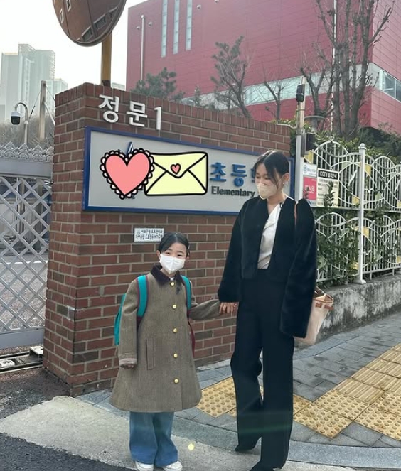 공개된 사진 속 이지혜는 첫째 딸의 손을 잡고 입학 예정인 초등학교 정문 앞에서 사진을 찍고 있다. 이어지는 사진에서는 첫째 딸 혼자 정문 앞에서 포즈를 취하고 있다.