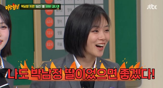 두 사람의 이야기를 들은 비비는 "나도 박남정 딸이었으면 좋겠다. 나도 심신 딸이었으면 좋겠어"라고 말해 현장을 폭소케 했다.