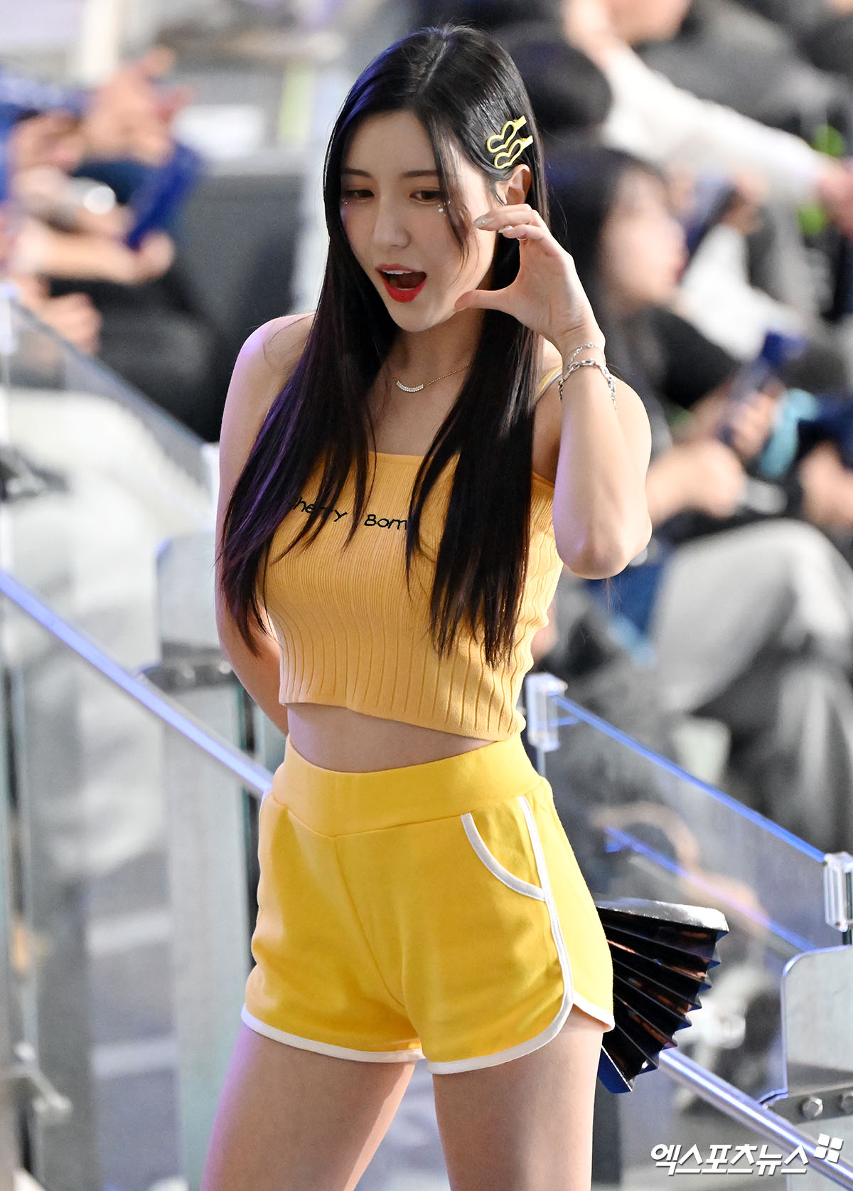'E컵 치어' 김현영, 가슴 다 못 가린 노출…엉덩이 라인까지 '헉'