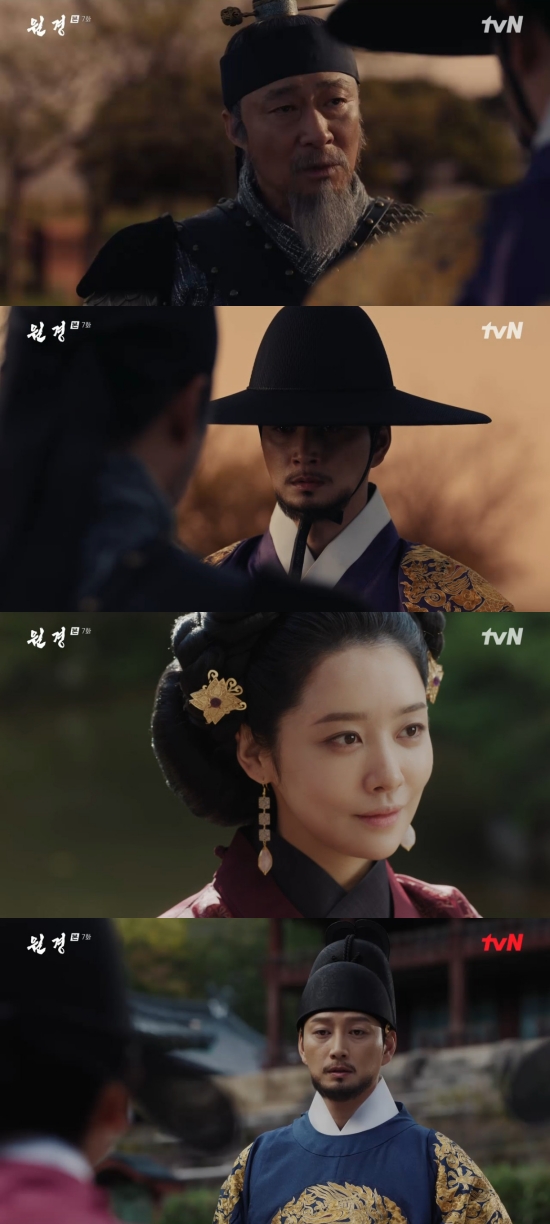 27일 방송된 tvN 월화드라마 '원경' 7회에서는 이방원(이현욱 분)이 이성계(이성민)와 원경(차주영)의 집안을 척결할 수 있다고 약속한 모습이 그려졌다.