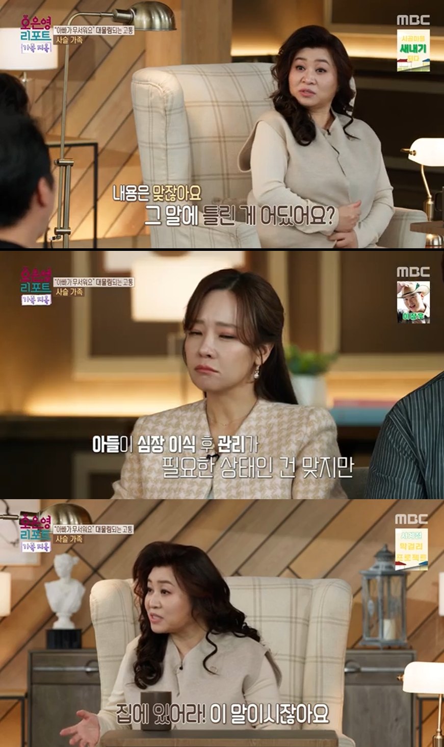 사연자의 아빠는 이에 대해 "12월에 아들의 심장이 멈췄다"면서 "심장이식수술을 했으니까 면역 억제제를 먹고 있어 사람 많은 곳에서 아픈 사람을 만나면 안되고, 음식도 따로 챙겨야 한다"고 설명했다.