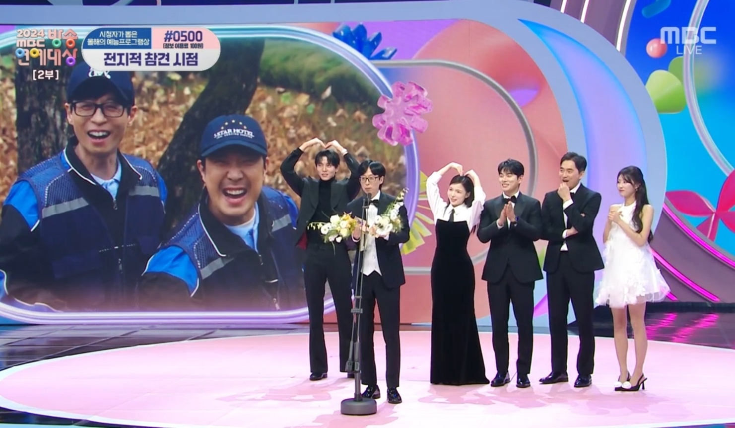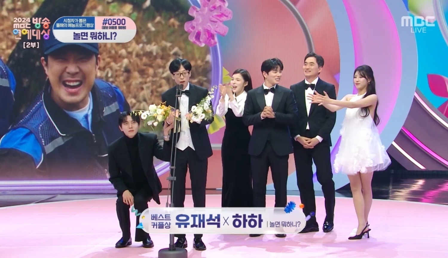 그러나 이날 수상은 '놀면 뭐하니?'의 유재석과 하하가 수상했다. 설 연휴 가족 일정으로 함께하지 못한 하하 대신 무대에 오른 유재석은 "받을 줄 몰랐다. 앞에 인터뷰도 네 분이 했는데 갑자기 제가 불려서 너무 놀랍고 미안하다"면서 "하하와 베스트 커플상을 받은 건 상당히 의미가 있는 상"이라고 덧붙였다.