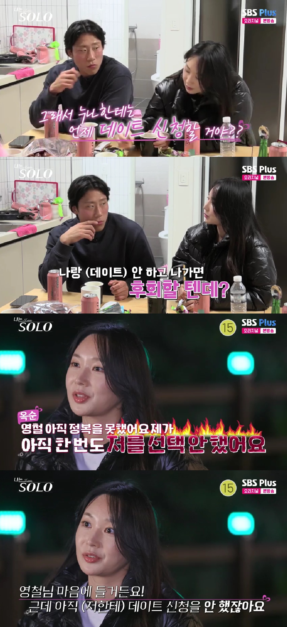 29일 방송된 SBS Plus와 ENA의 ‘나는 SOLO’에서는 옥순이 영철에게 플러팅을 건네는 모습이 그려졌다.