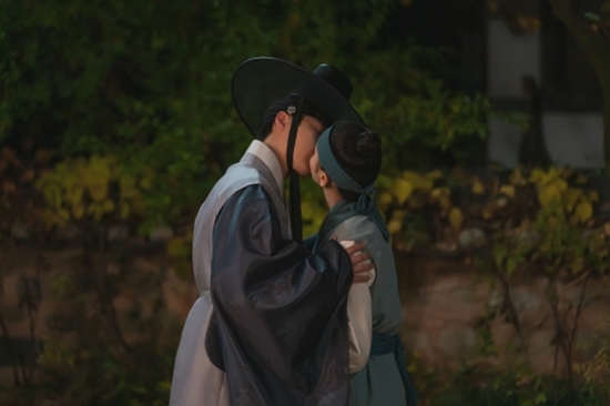 (엑스포츠뉴스 윤현지 기자) '체크인 한양' 배인혁과 김지은의 키스신 스틸컷이 공개됐다.