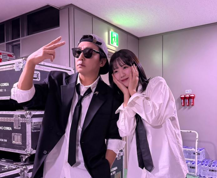 이날 공개된 사진 속 탁재훈은 '2024 SBS 연예대상'에서 로제 'APT' 패러디 무대로 함께 합을 맞춘 지예은과 함께 포즈를 취하고 있다.