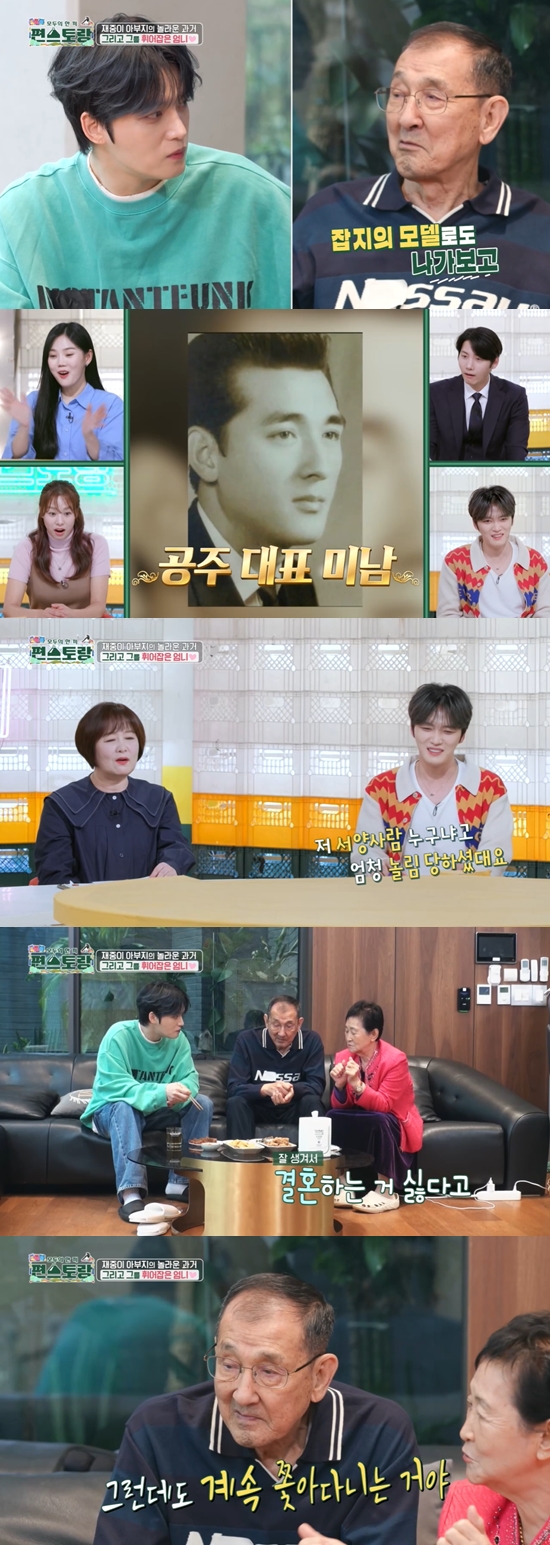 이어 공주의 대표 미남으로 불리던 부친의 과거 사진이 공개됐다. MC 붐은 "알랭 들롱이다"라고 감탄했고, 김재중은 "그 당시에 '저 서양사람 누구냐'고 놀림을 당했다고 하시더라"고 말했다. 이에 붐은 "그런 오해를 받을 만하다"고 김재중 부친의 콧대에 말을 잇지 못했다.